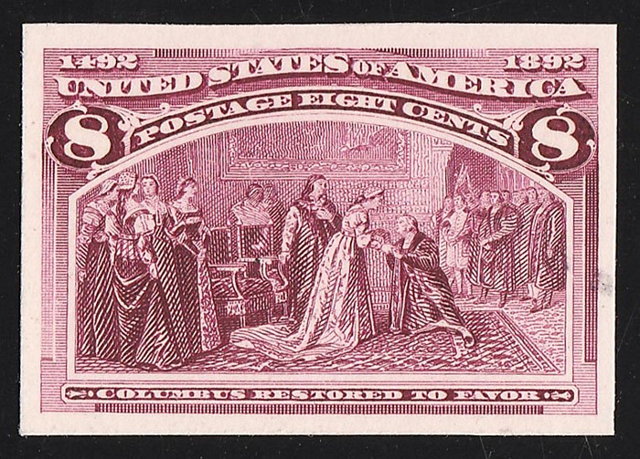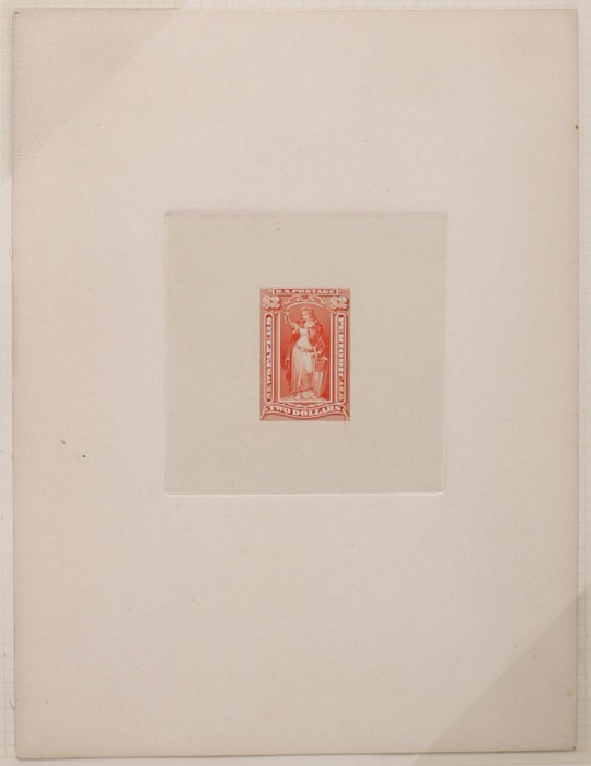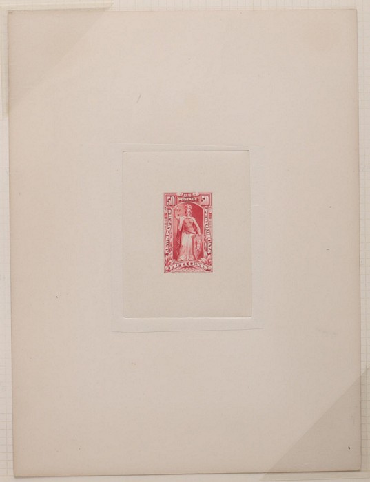 claret, imperf proof on card. Superb UN as made, 4 margins. SG 241(p), Sc 236PU cat US$150+. (Image1)