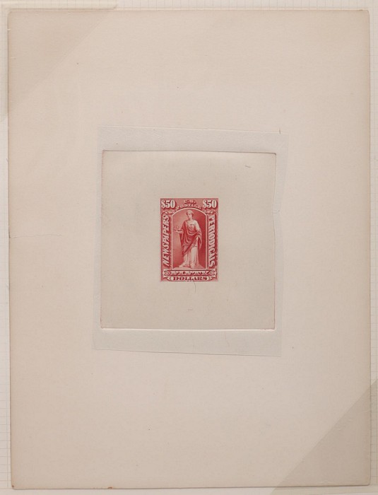 Periodical set 2c-$100, large DIE PROOFS on India paper on card (150x200mm), imperf, in issued, or other colours. Mostly superb UN as made with nice sunken area, except 25c is affixed on replaced card. SG N279-N290(p) cat £22,850 as normals. Sc