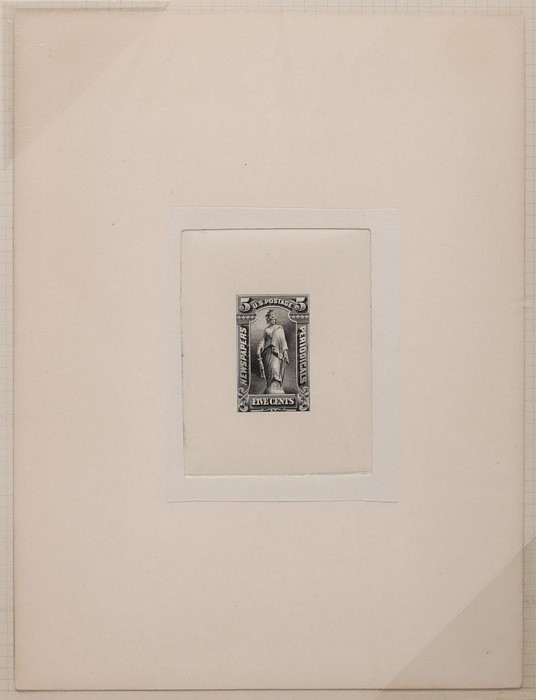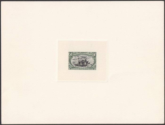 Trans-Mississippi Expo 50c black & blue-green, bicolour Essay, with comp design, on India paper, on card (203x153mm). Superb fresh UN as made. SG 297(p) cat £800 as normal. Sc 291-E8 cat US$750. Very rare. (P) (Image1)