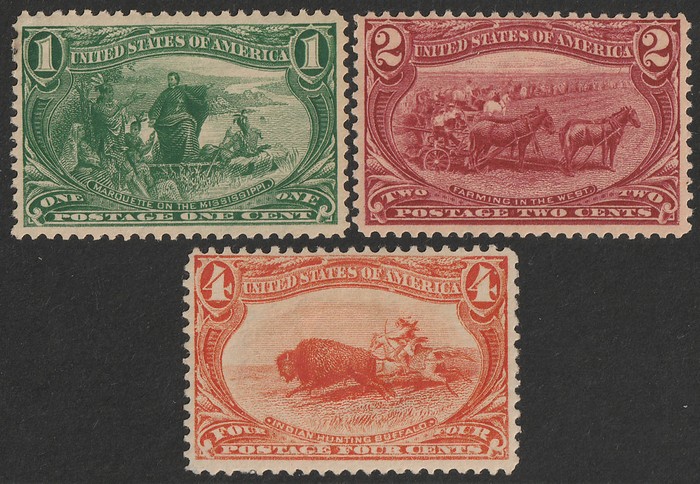 Trans-Mississippi Expo 1c, 2c & 4c. VF fresh MMLH, 4c tiny thin. Scott 285-87 cat US$163. SG 291-93 cat £202. (3). (Image1)