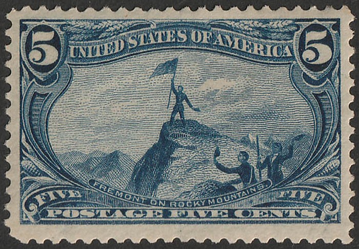 Trans-Mississippi Expo 5c dull blue. Superb fresh MLH. Scott 288 cat SU$100. SG 294 cat £130. (Image1)