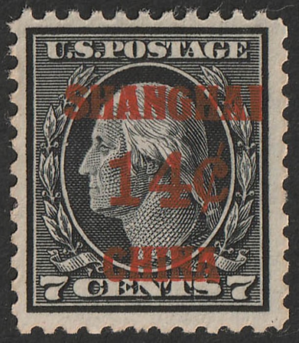'SHANGHAI 14c CHINA' opt Washington 4c black. VF fresh M. Scott K7 cat US$83. SG 7 cat £110. (Image1)
