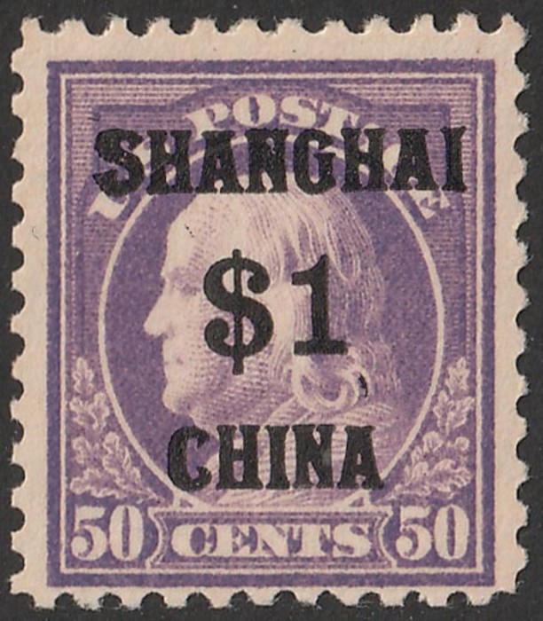 'SHANGHAI $1 CHINA' opt Franklin 50c light violet. VF fresh MLH. SG 15 cat £650. Scott K15 cat US$550. (P) (Image1)