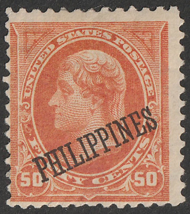 1899-1901 opt Jefferson 50c yellow-orange F-VF fresh M. Scott 219 cat US$125. SG 263 cat £160. (P) (Image1)