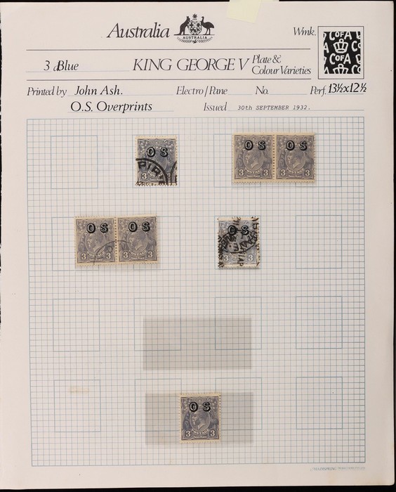 with partial Norfolk Islands? Cds. 2d scarlet CofA wmk John Ash imprint blk of 4, some OS flaws such as 'flawed S', 'duplicated S' etc prs & blks of 4. F-VFU, some F-VF MLH/MNH. Mostly F-VF condition. SG O133(var). ACSC cat approx $6000+. Inc many