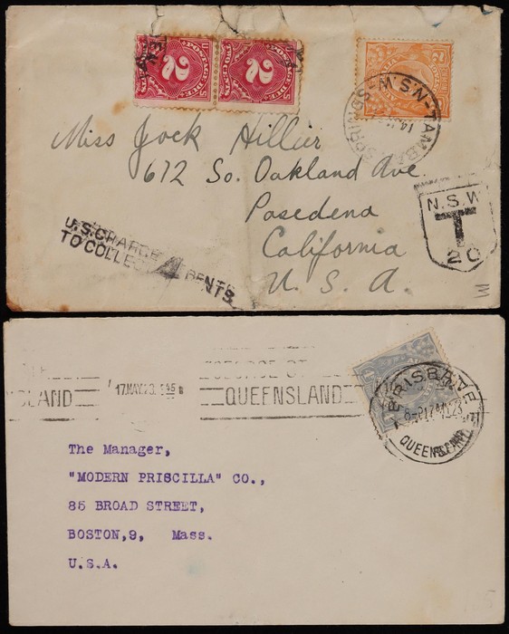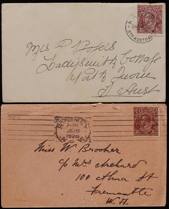 23 FEB 28. From Perth, various transit b/s, Unknown By letter Bearer etc. VF fresh. ACSC cat $225. (2) (Image1) (Image2)