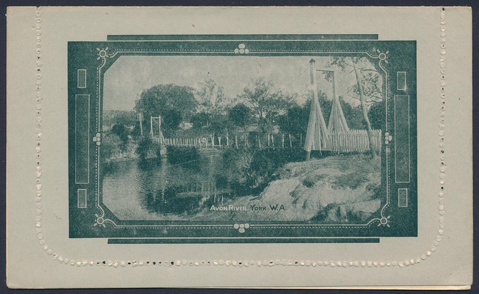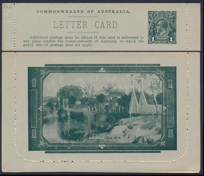 KGV 1d black, die 2, perf 10, view Avon River York WA. Superb fresh UN. ACSC LC21(7) cat $150. (Image1) (Image2)