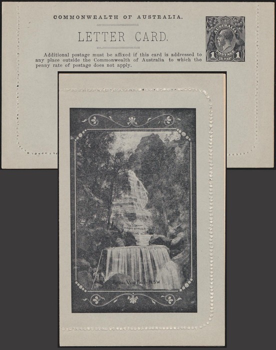 KGV 1d black, Die 2, perf 10, view 'Bridal Veil Falls'. Superb fresh UN. ACSC LC21(17) cat $150. (Image1) (Image2)