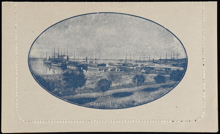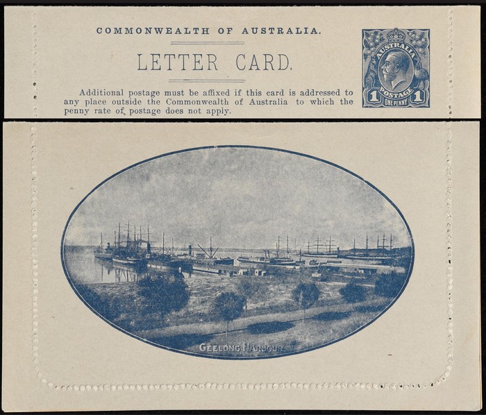 KGV 1d dark blue Die 2 perf 10, view Geelong Harbour. Superb fresh UN. ACSC LC21(49) cat $150. (Image1) (Image2)