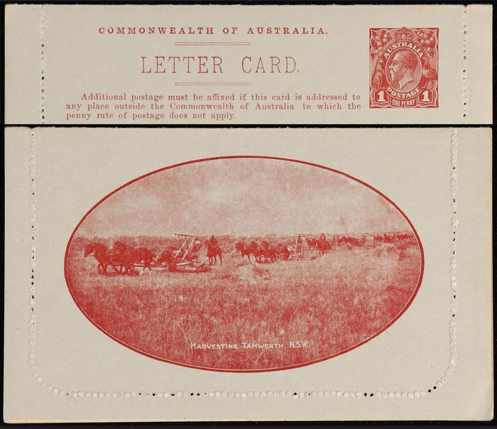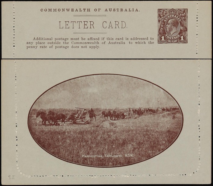 KGV 1d brown Die 2, perf 10, view 'Harvesting Tamworth'. Superb fresh UN. ACSC LC21(60) cat $150. (Image1) (Image2)