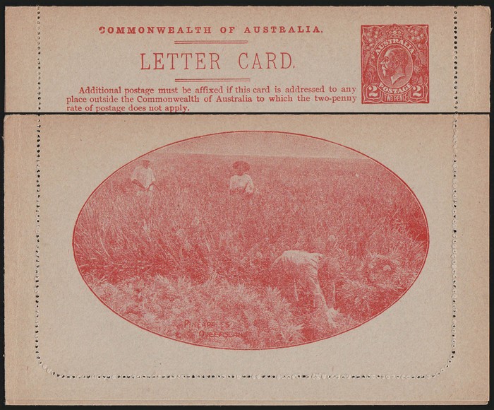 KGV 2d red view 'Pineapples' (pickers). VF UN. ACSC LC49(102B) cat $250. (P) (Image1)