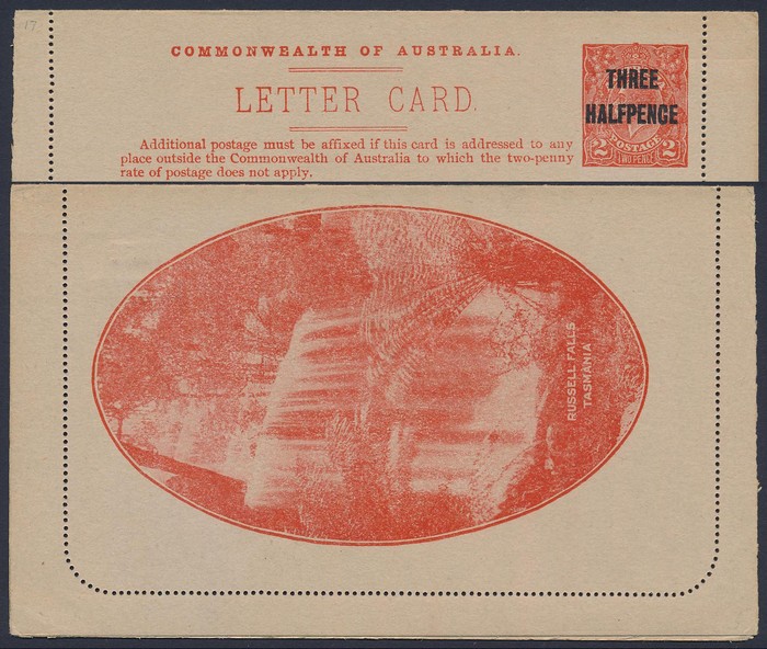Surch 1½d on KGV 2d red, view Russell Falls. Superb fresh UN. ACSC LC54(118) cat $400. (P) (Image1) (Image2)