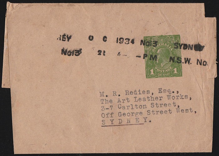1924-38 KGV 1d green Die I w/o text. VFU, Sydney 2-line 1934 pmk. ACSC WS12 cat $200. (P) (Image1) (Image2)