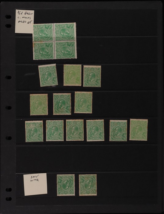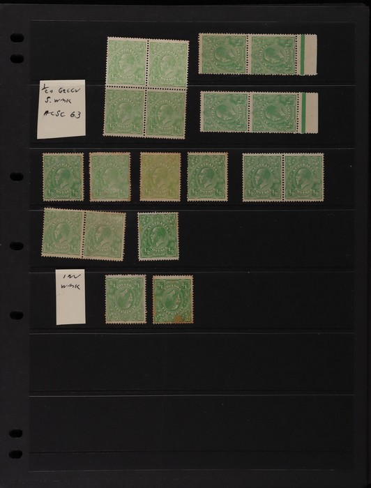 several 3d blue Mullett wmk INVERTED, range of 4d orange inc lemon-yellow, no wmk 1d green & 1½d red (4-60 each). There appears to be a comp set of all wmks/perfs to 1/4 & several individual sets, single wmk & perf 13½x12½. Small
