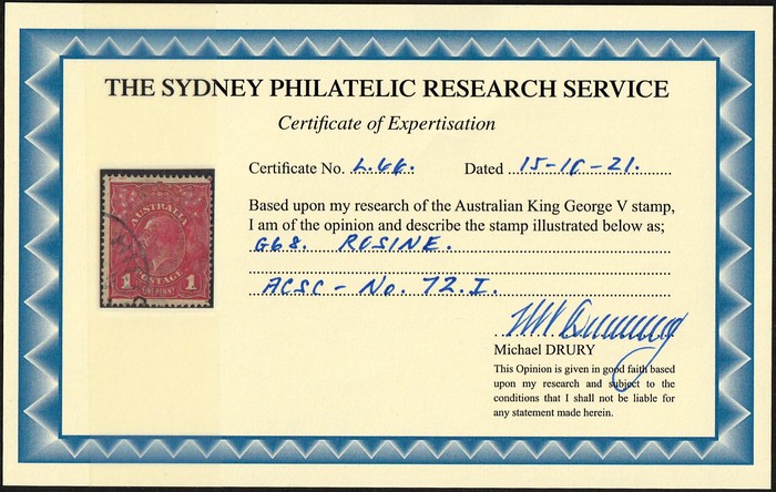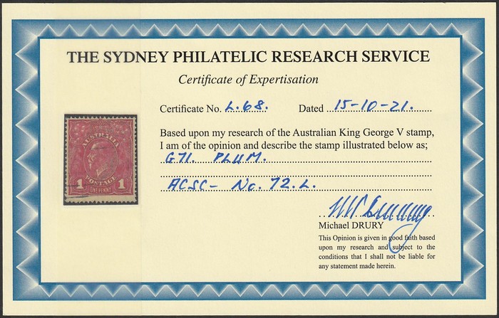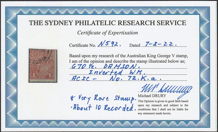 INVERTED (G70½). FU. SG 47(var), ACSC 72Ka cat $1250. Very rare, only about 10 recorded. 2022 Drury photo cert. (P) (Image1) (Image2)