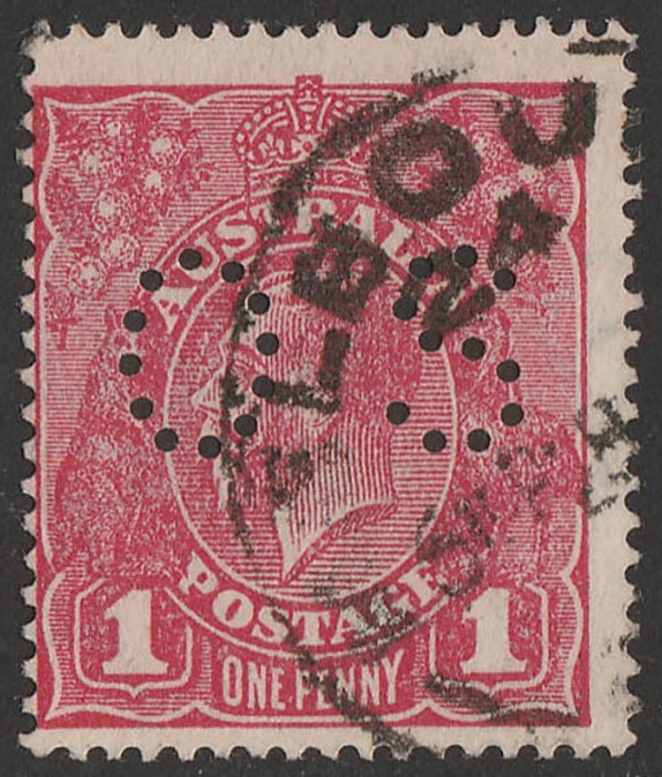 (G70½) perf OS. VFU, partial Melbourne cds. SG O54(var), ACSC 72Kbb cat $500. (P) (Image1)