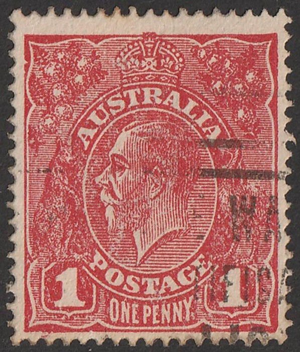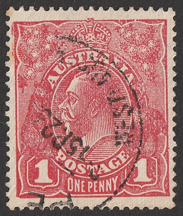 (G70½) compartment lines left margin. VFU, with partial Summer Hill NSW 28 MR 1918. SG 47(var), ACSC 72K cat $200. (P) (Image1)