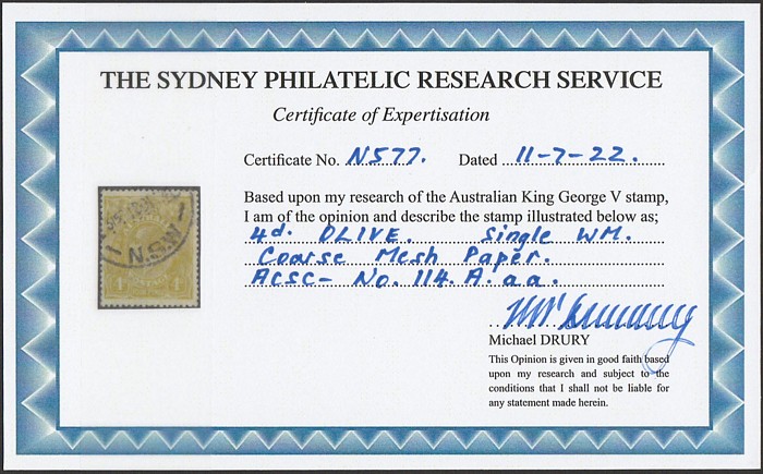 mesh paper. Lightly sun-tanned gum, F-VF MNH. SG 80(var), ACSC 114Aaa cat $575. 2024 Drury photo cert. (P) (Image1) (Image2)