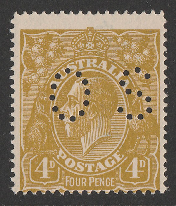 perf OS with major variety 'flaws left value tablet' (1R30). F-VFU. SG 81(var), ACSC 118Aab/vb cat $125, plus x4 premium for variety is $500. (Image1)