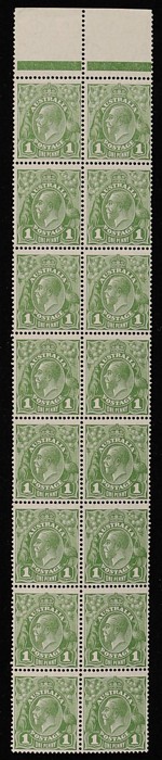 marginal strip of 8 prs, all Die II units. Very useful for identification of Die II positions. Suit specialist. Very fresh MNH, sl perf separation, 1 stamp spots on gum, others VF. SG 95b cat £800 = A$1800. ACSC 81B(1)I cat $1560. (16 Die II) (Image1)