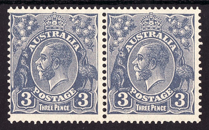with left stamp retouch ST of Australia. Superb fresh VF MLH. SG 79(var), ACSC 108Cg cat $165. (2) (Image1)