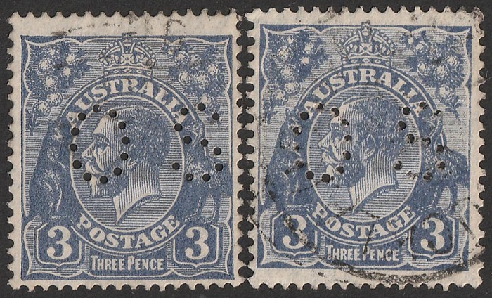 OS. Variety 'dry ink'. Lightly cancelled, VFU. ACSC 108A b c cat $150. With normal printing for comparison. (Image1)