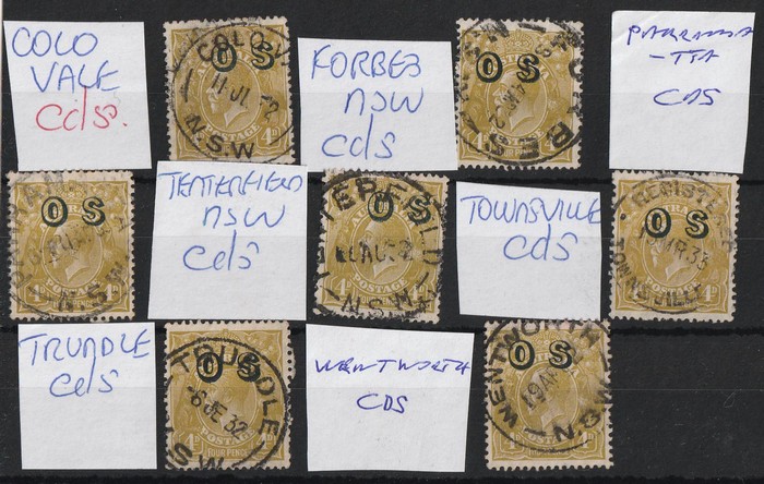 opt OS, range of Commercial cds inc Trundle, Forbes, Wentworth, Townsville etc, showing the wide usage. F-VFU. ACSC 116 B (OS) cat $350. (7) (Image1)