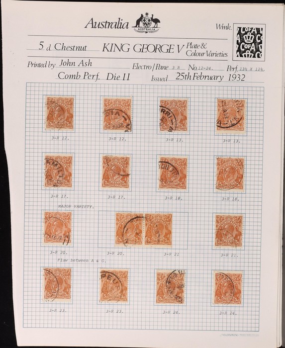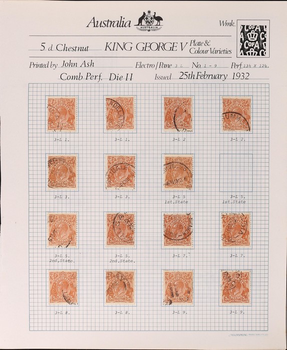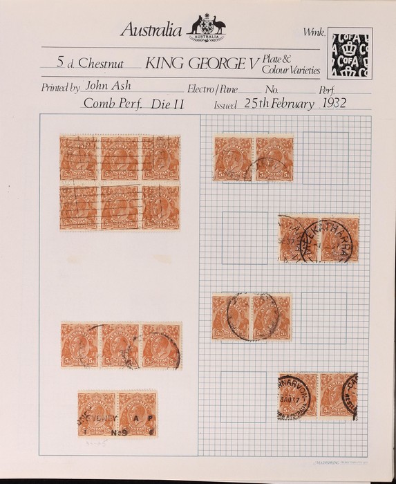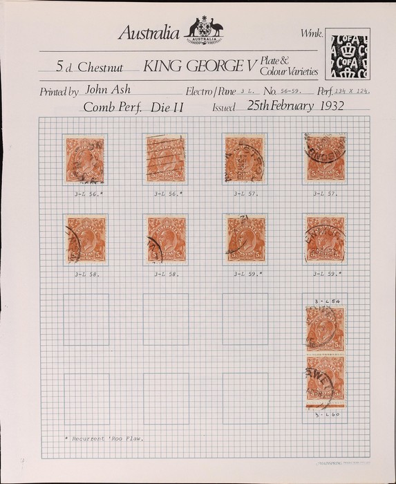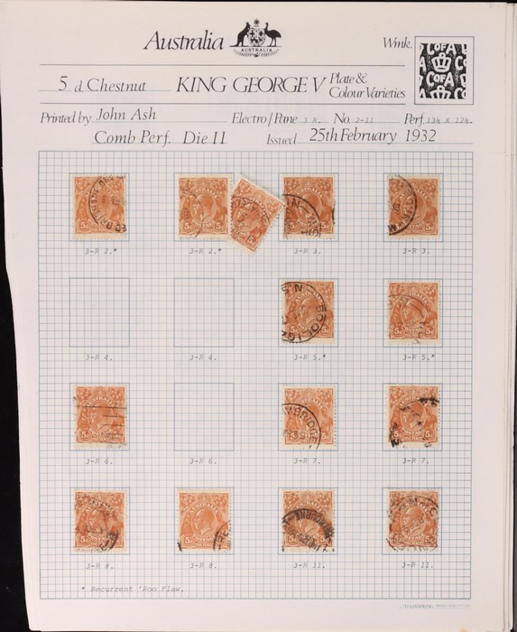 multiple & CofA wmk 1930-38 collection on pages inc range of shades, SM wm inc John Ash perf OS imprint blk of 4 & imprint pr & several varieties, CofA wmk inc John Ash imprint blk of 4, duplicated range of plate 3 major varieties (50+) inc 'frame
