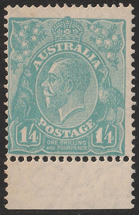 variety 'thick 1 at right', lower marginal single. F MNH, sl darker gum. SG 104(var) cat £140 as M normal, should be at least double £280 MNH plus premium for variety, ACSC 130An cat $1300. (P) (Image1)
