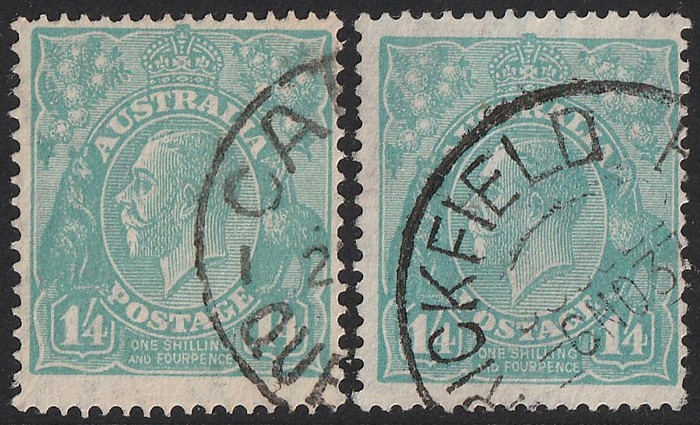 turquoise-blue shades. F-VFU. SG 131(var). ACSC 131 A & B cat $125. (2) (Image1)