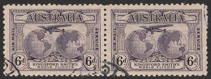 Smith 6d violet horiz pr, left stamp variety 're-entry to T, FO & LD'. VFU. SG 123/a cat £132. ACSC 143/d cat $135. (Image1)