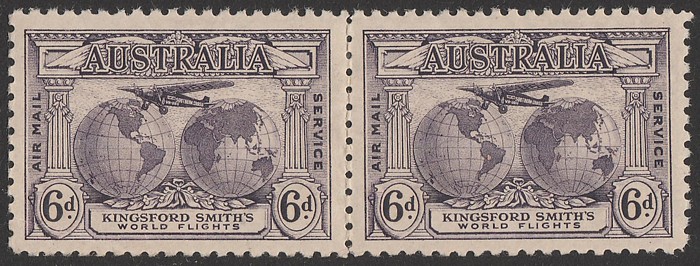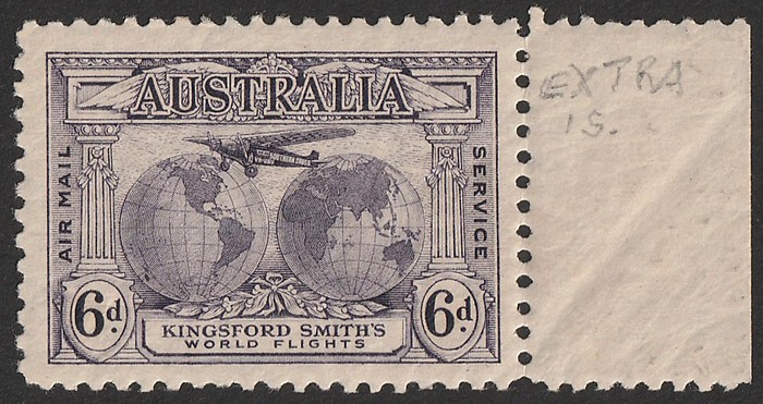Smith set 2d, 3d & 6d part sheets of 64 (8 rows x8 with 3 margins). All have Ash imprint blks & 2d & 3d have plate blk No 3. 3d blue also has major variety 'plane dropping mailbag' (plate 3/21) & 6d has major variety 're-entry to T of Australia, FO &