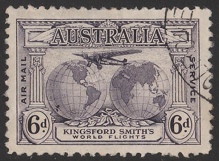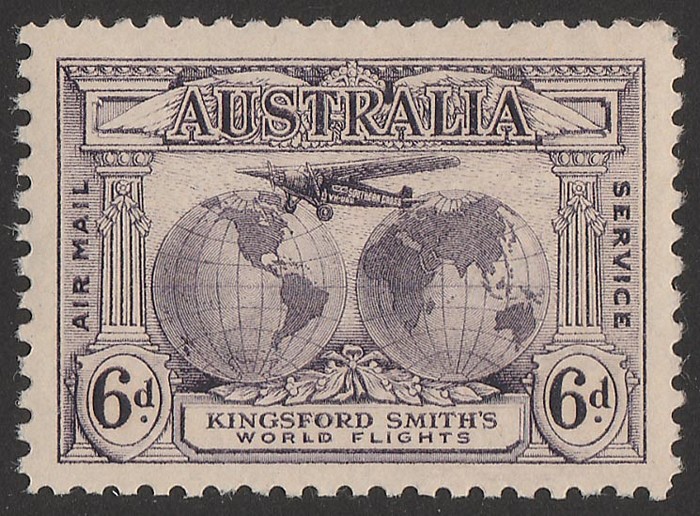 Smith 6d violet variety 're-entry to T of AUSTRALIA'. VFM. SG 123a cat £60. ACSC 143d cat $100. (Image1)