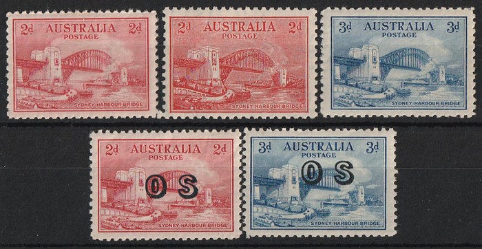 (both) & 3d plus OS opts. VF fresh MNH. SG 141-2, 144 & O134-35 cat £59 for M, should be at least double, £118 MNH. ACSC 146-7 & 149 & O146-47 cat $132. (5)