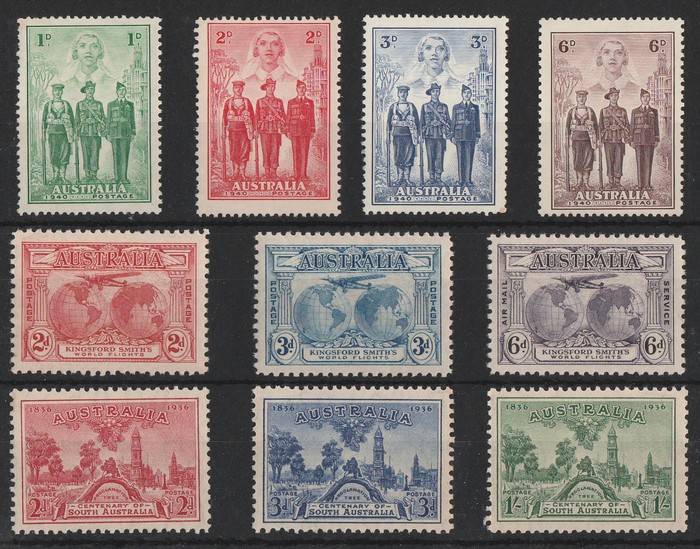 1931 Kingsford Smith set of 3 & 1936 South Aust Centenary set of 3. F-VF MNH. ACSC cat $175. (10) (Image1)