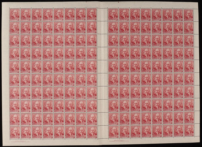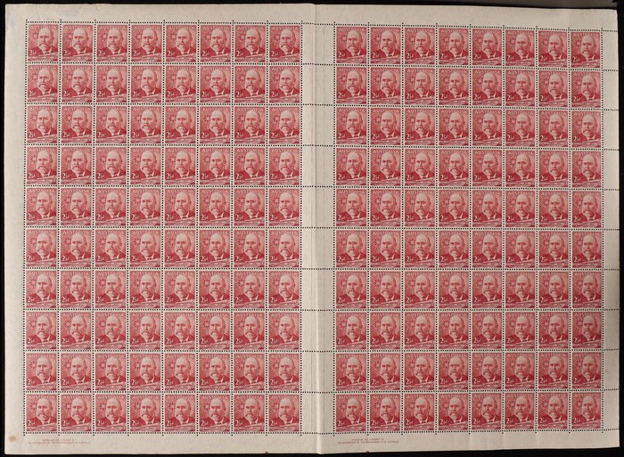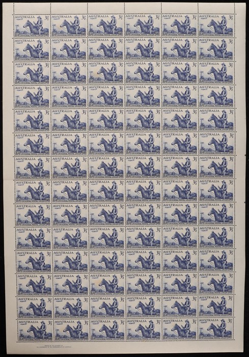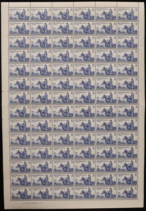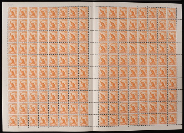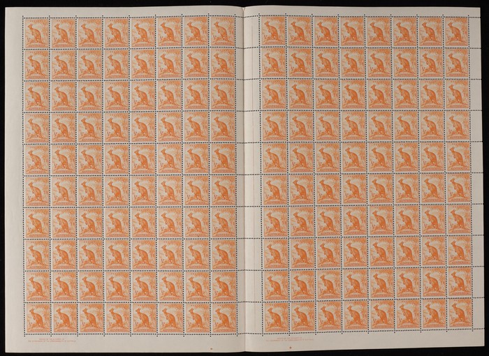 sheet of 84 with perf-pips at left & Authority imprint al LL cnr. A couple of rev spots o/w F-VF MNH. SG 232(var), ACSC b z cat $220. (84) (Image1)