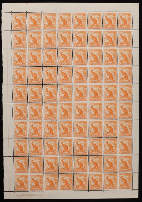 sheet of 84 with perf-pips at right & Authority imprint al LL cnr. A couple of stamps with tone spots o/w VF MNH. SG 232(var) cat £50+, ACSC 276 ba z cat $220. (84)
