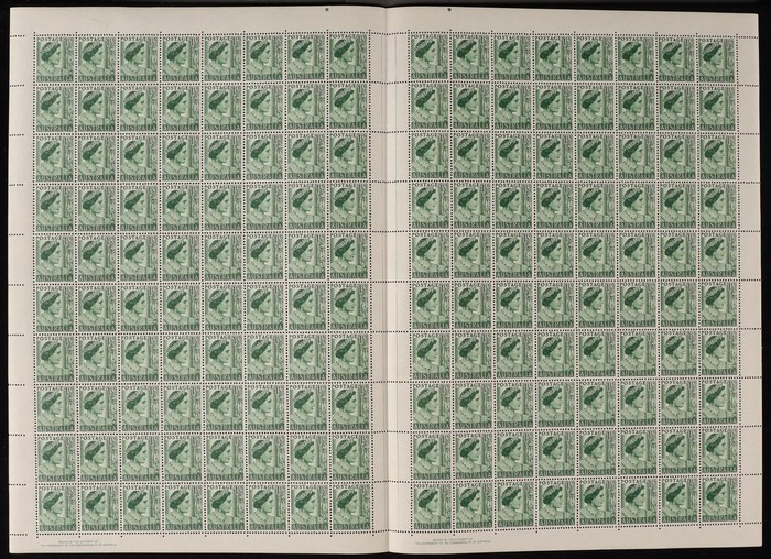 green sheet of 160 with perf-pips at centre top & both Authority imprints. Couple of minor bends. VF MNH. SG 236(var) cat £200+, ACSC 247b ze zf cat $375. (160)