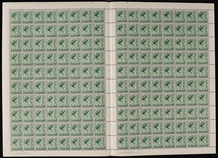 green sheet of 160 with perf-pips at centre top & both Authority imprints. Couple of minor bends. VF MNH. SG 236(var) cat £200+,ACSC 247b ze zf cat $375. (160)