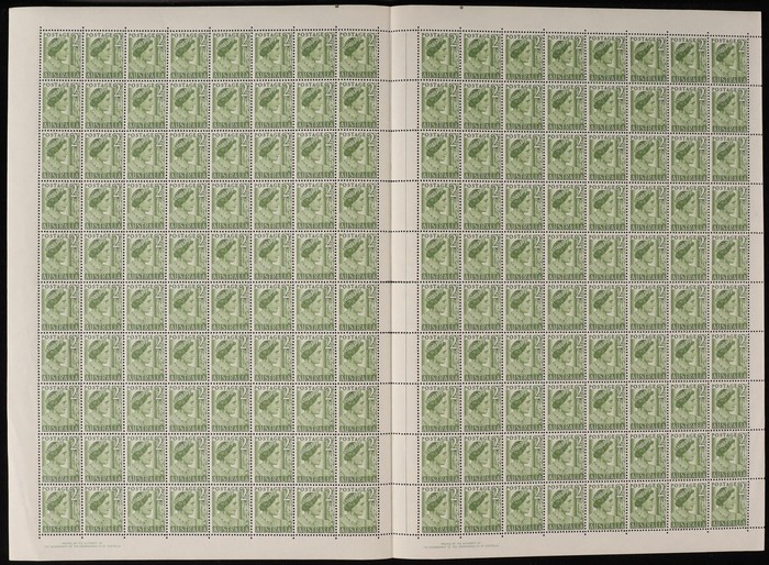 yellow-green sheet of 160 with both Authority imprints. VF & fresh MNH. SG 237(var), ACSC 248zc zb cat $405. (160) (Image1)