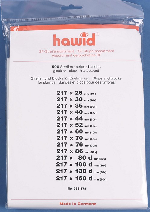 Hawid Clear Mounts 500 strip wholesale assortment of 14 diff sizes from 217 x 26 mm to 217 x 160mm with 20-50 of each of each strip. Retail $220.