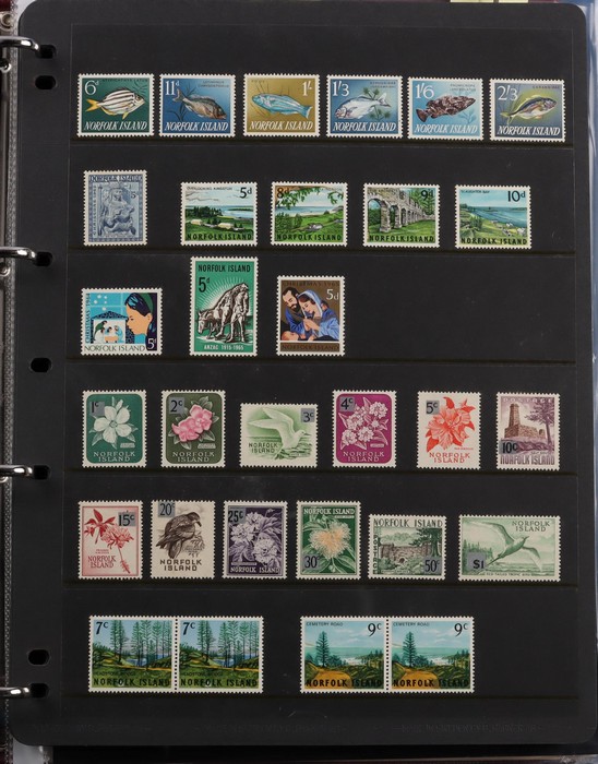 348 imageBrown carton. British Commonwealth lot with hagner binder with Pacific Islands in 50 hagners inc AAT to 1980, Christmas Is 1958 & 1963 Def sets, Cocos Is pre-decimals comp, Nauru, Norfolk Is 1947-66 inc 1960 Birds to 10/-, PNG to 1980 inc 1952 Pics to £1 Fisherman, 1963 Defs to QEII £1, 1964 Birds to 10/- & 80 MNH decimal Pic/Commem sets, plus Samoa & Tonga. New Zealand 1920s-60s dealer stock in maroon binder inc 1960 Pic sets (4) to £1 Geyser, plus 1940-90 Heritage & 1994 Emerging Years PO Albums. Christmas Is to 1975 (retail $160) in Seven Seas hingeless album with extra pgs to 1986 ($40). Australia 1969-75 PO Pack accumulation (42), plus Indonesia 1996 Joint Issue Cuscus booklet (4, cat $400). Pakistan 1947-72 collection in 2 VGC springback binders inc Officials & Philatelic/Commercial covers. South Africa 1970s Commem sets & 1980s FDC collection in loose leaf album. Tuvalu, Kiribati & Fiji MNH collection in 2 KEK s/books, strength in Tuvalu inc Officials to $5 cnr blks of 4. Mixed M/MNH/U, all neatly packed into large carton. (Image1) (Image2) (Image3) (Image4) (Image5) (Image6) (Image7) (Image8) (Image9) (Image10) (Image11) (Image12) (Image13) (Image14) (Image15) (Image16) (Image17) (Image18) (Image19) (Image20) (Image21)