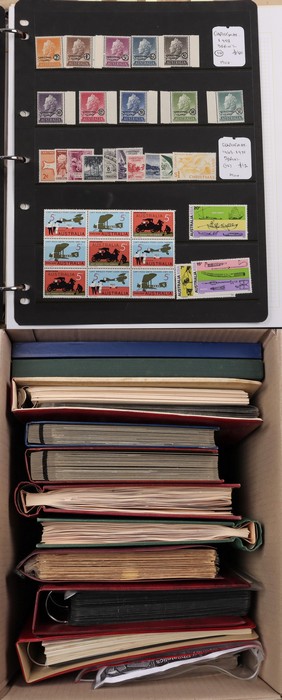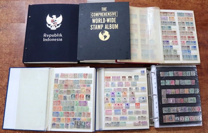 357 imageCarton lot with 6 albums/s/book. Inc Indonesia 1948-80s in Davo illustrated album M & Used. Useful range of sets/part sets inc 1951 UN Day M, late 1960s-70s M/U cat £850, Netherlands 1872-1990 G/FU accumulation in overfilled s/book, many extras. Also Middle East range in s/book inc Egypt, Lebanon, Iran, British Commonwealth in blue ring binder M/U, Foreign inc Indonesia in s/book, also phone book thick World illustrated album, sparsely filled. F/VF M/U. (c7000) (Image1)