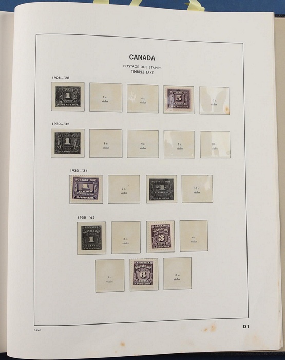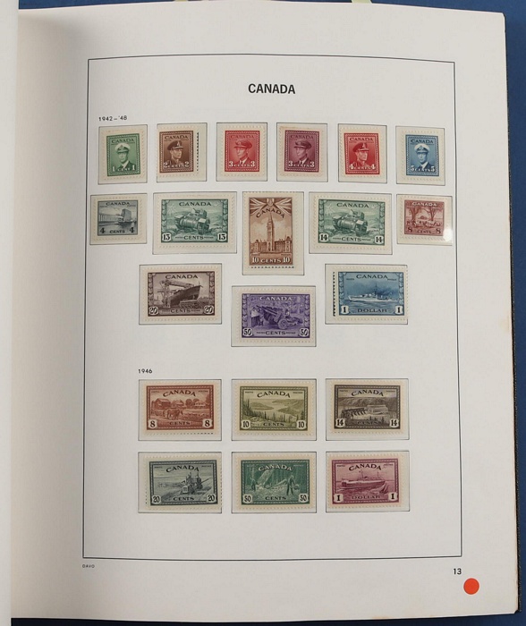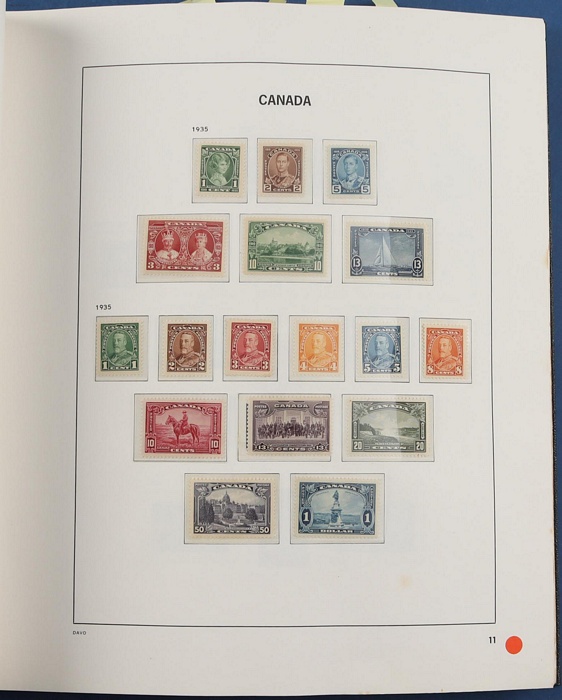 351 imageCollection in 2 Davo hingeless albums mostly mint, largely MNH. Inc QV Defs 1897 2c violet, 1898 3c rose-carmine & others, 1898 2c Christmas, KGV Heads 1918-25 to 10c blue, 1927 60th Anniv set, 1927 Commem set of 3, 1928 Pics to 20c, 1930 Pics to 20c, 1932 KGV Heads + 13c Citadel SG 319-325, 1935 Jubilee set, 1935 Pics set all MNH, 1937 Pics part set to 50c MNH, $1 MLH, 1951 $1 Fisherman MNH, 1949 Pics & Airs M/MNH, 1946 Peace set MNH then subsequent issues through to 1991, also 1991 Year Books & FDC selection 1985-90 (44). FV post 1986 C$180. BoB inc Officials 1949 OHMS opt set SG O162/171 MNH, 1950 $1 Fisherman MNH SG O192, Registration 1875 2c, 5c M/UN, various others. A useful collection ideal for expansion, odd tone spot but largely MNH cat £2500+ = A$5000. F/VF. (1000+, 7 M/Sheet, 44 covers)) (Image1) (Image2) (Image3) (Image4) (Image5) (Image6) (Image7) (Image8) (Image9) (Image10)