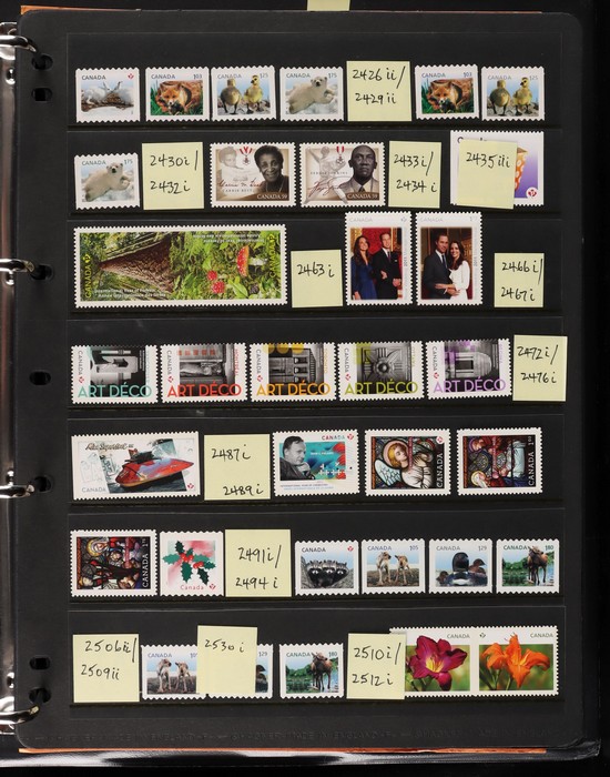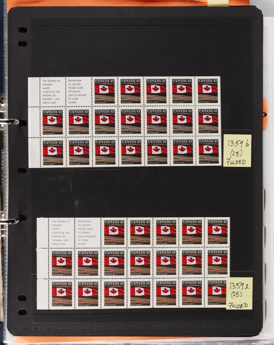 354 imageCanada 1976-2012 MNH collection in 3 large hagner binders, various varieties such as perfs, papers, Phosphors, booklet stamps etc inc 1975 Sculptures $1 & $2 dull paper M/S, experimental 45c & 46c booklets etc, fairly comp, all diff, many sets. Fresh VF MNH. SG cat £2500+. FV inc P Stamps C$2700 = $3000. (1900 + 60 M/S, 60+ booklets) (Image1) (Image2) (Image3) (Image4) (Image5) (Image6) (Image7) (Image8) (Image9) (Image10) (Image11) (Image12) (Image13) (Image14) (Image15) (Image16) (Image17) (Image18) (Image19) (Image20) (Image21) (Image22)