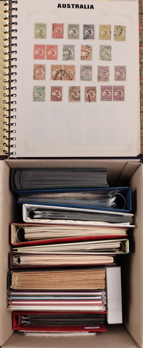 359 imageCarton lot with Australia 1913-85 collection in 1970s loose leaf album with Kangaroos to 2/- brown. KGV to 1/4, 1930s Commem sets, KGVI Defs to £1 blue, QEII Pre Dec Pics to £2 King & Decimals to $5 Navigator M & to $10 Painting Used. Also 1990 PO books (5, new issue price $70+) & 1980s Benham 'silk' FDC collection blue album with 'ephemera' inc Decimal letter cards, 1970s PPC & Canadian Postal Stationery Christmas Is 1958-1975 MNH collection (retail $130) in Seven Seas illustrated album with extra pgs to end 1981. Faroe Is 1995 MNH Pics with Leaf Hopper set of 4 (200, cat £2200), Tourism pr (50, £220), Europa pr (50, £310) Rural Life trio (100, £1230) & 1995 Christmas pr (100), total SG cat £4400 = A$8500 USA 1920s-1990s accum/collection (100s) in thick black s/book & white binder. Norfolk Is 1947-1975 MNH collection (retail $400) in Seven Seas hingeless album (pgs to 1983) inc 1947 Ball Bay to 2/- blue, 1953 Defs to 5/- Brown Bridge, 1960 Pics to 10/- Bird, 1966 opts, 1969 Birds, & 1974 UPU M/Sheet, 13 albums/books in total, all in large carton, mixed M/MNH/G-F/VFU. (1000s) (Image1) (Image2) (Image3) (Image4) (Image5) (Image6) (Image7) (Image8) (Image9) (Image10) (Image11) (Image12) (Image13) (Image14) (Image15)