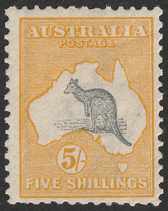 5/- Grey & yellow.