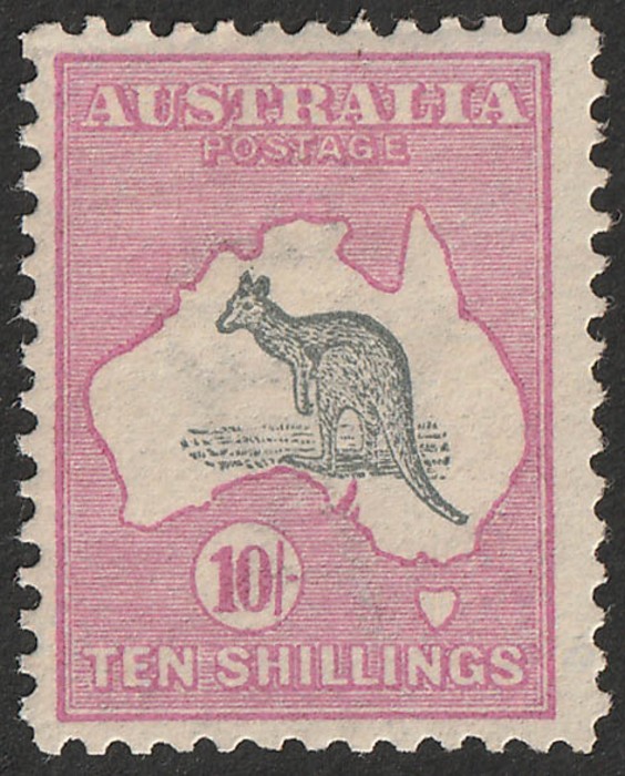10/- grey & pink with multiples of all denominations to 1/- inc Small OS, 2½d perf, 3d Die II, 4d orange, 5d chestnut, Large OS 2d, 3d, 4d, 5d, 6d, 9d & 1/-, several CTO inc 2/-. 10/- with variety 'broken/short tail' (ACSC 47(V)c cat $1400).