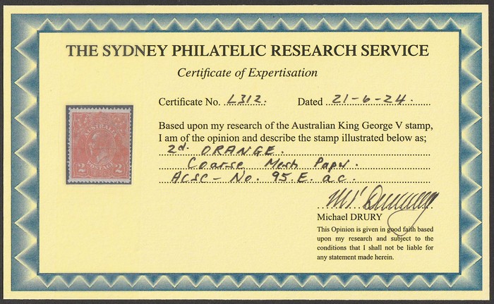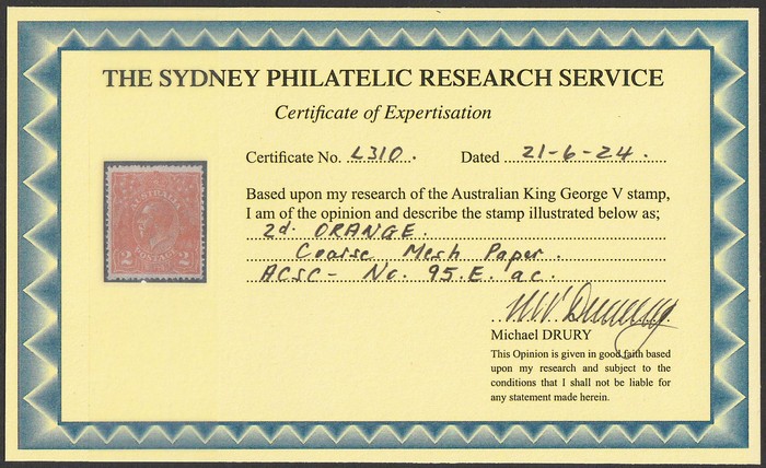 paper. VF fresh MLH. SG 62(var). ACSC 95Eac cat $300. Scarce. 2024 Drury photo cert. (P) (Image1)
