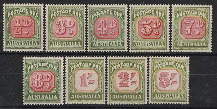 73 image1916-59 M/MNH selection KGV to 3d inc 1d red Die II (VF MNH), plus 4d lemon, various 1930s Commemorative sets inc 1931 Kingsford Smith, 1934 VIC Cent, 1936 Silver Jubilee, 1936 SA Cent, 1938 NSW 150th Anniv, 1946-59 Postage Dues ½d to 5/-, 1958 no wmk ½d to 2/-. Mainly F-VF MNH. ACSC approx cat $1200+. (50+) (Image1) (Image2) (Image3) (Image4) (Image5)
